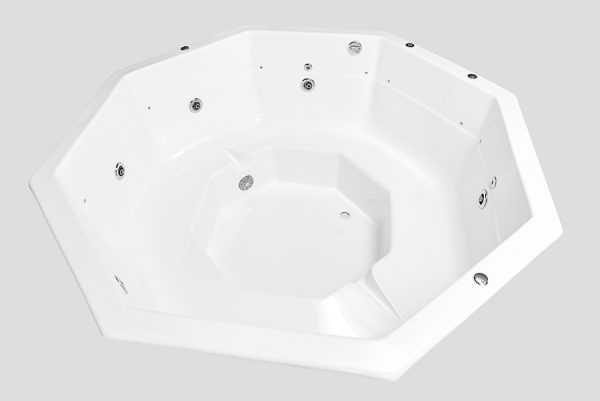 SPA diseñado en forma octogonal con asientos para 8 personas.